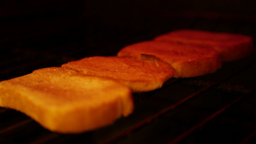 2. Toast one side of the bread in the middle rack until golden brown. You can use the upper racks if you want to hurry the process, but be warned. It is very easy to burn the bread.