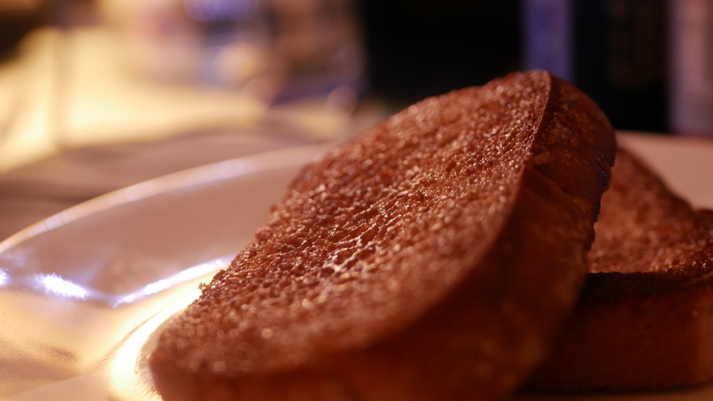 Don’t expect all of the sugar to caramelize. The butter is there to not only add flavor but to melt and restructure the sugar, forming a crispy layer on the bread.